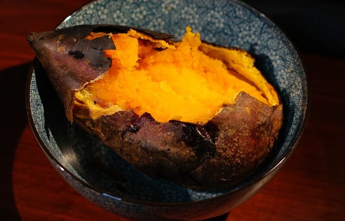 고구마는 복합탄수화물로 포도당을 공급하여 고강도 운동 시에 효율을 높이고, 근육 회복을 돕는 효과가 있습니다. 고구마 속 칼륨 성분이 운동 중 생길 수 있는 근육 경련을 예방해준다고 합니다. 다만, 구운 고구마는 삶은 고구마보다 혈당지수가 두 배 이상 높아 주의가 필요합니다. 아침에 운동을 할 때, 공복에 고구마를 먹는 것도 주의가 필요합니다. 고구마에는 아교질, 타닌 등 위벽을 자극하고 위산이 많이 나오도록 촉진하는 성분도 많이 들어있기 때문입니다. 그렇기 때문에 공복에 고구마를 먹게 된다면 속이 쓰릴 수 있어 주의해야 합니다.