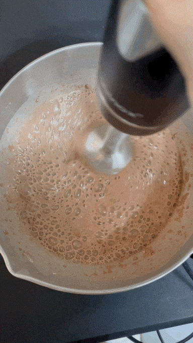 그리고 난 후에는 섞어주면 됩니다! 휘핑기가 있으면 더 잘 섞이고 좋았겠지만.. 없기 때문에 아쉬운대로 블렌더를 사용했어요. 생각보다 나쁘진 않았지만 조만간 휘핑기를 사야겠다 생각했습니다. 그래도 잘 섞인 모습이었습니다.