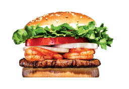 직화로 구워낸 두툼한 미트 패티에 신선한 양상추와 토마토, 특제 버거 소스를 더한 오리지널 버거입니다. 439kcal의 낮은 칼로리를 자랑하지만 중량 또한 189g으로 가벼운 편에 속합니다. 단백질은 17g이며 포화지방은 6g 들어있습니다.