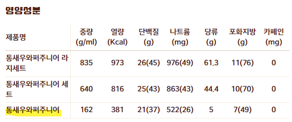 영양성분표 첨부해드리니 참고하셔서 선택하시면 되겠습니다.