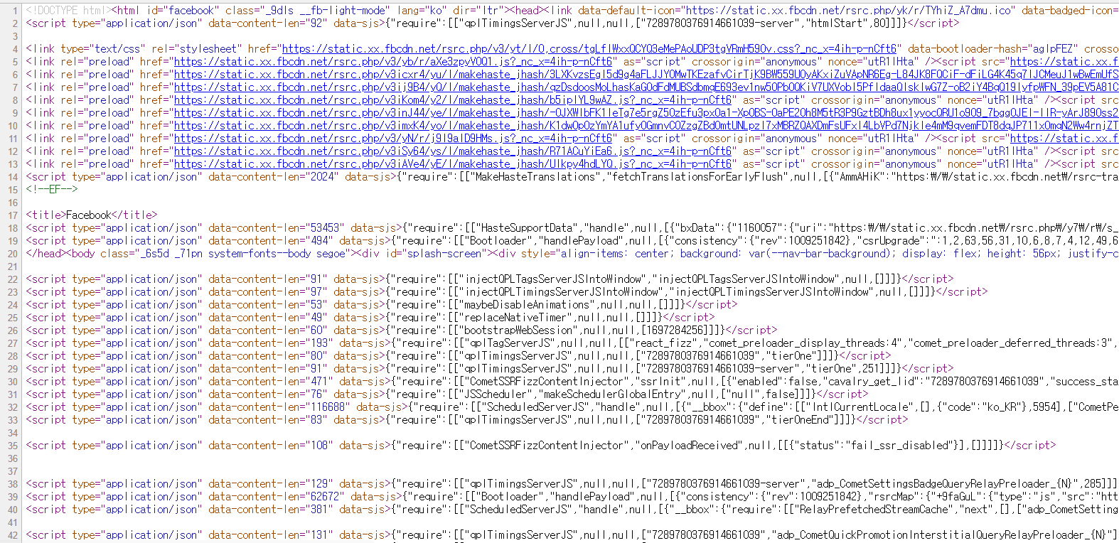 새로운 인터넷 창을 열고 아까 복사했던 링크를 붙여넣기 하여 열어줍니다. 그러면 아래와 같은 html 용어들이 가득 적힌 페이지가 등장합니다.