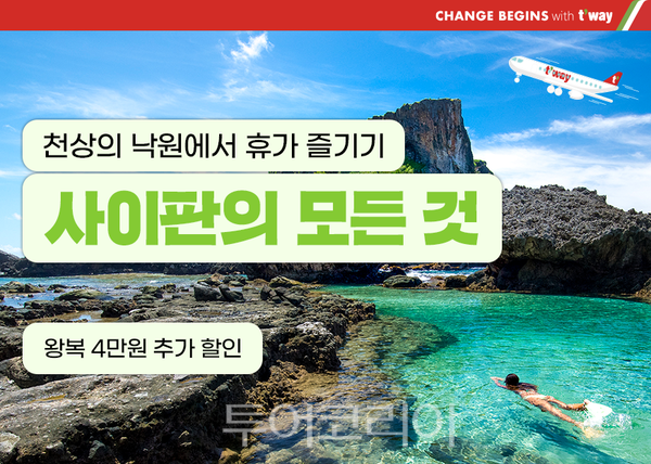 마리아나 관광청은 한국 관광객 유치를 위해 국내 항공사와 손 잡았습니다. 티웨이항공과 공동으로 사이판 노선 여행객을 위한 할인 행사를 펼칠 예정인데요, 인천~사이판 노선을 1인 편도 총액 14만 9,300원부터 판매한다고 합니다. 특히 인천~사이판 왕복 노선 예매에 4만 원 할인 쿠폰도 즉시 제공한다고 하네요. 해당 이벤트를 통한 탑승 기간은 7월 18일까지로, 극성수기 기간을 피해 여행하실 분들은 관심 가지시면 좋을 것 같습니다.