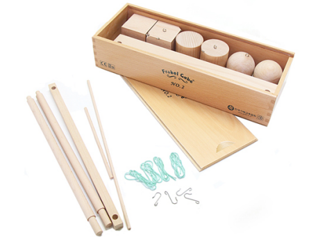 2가베에는 나무로 만든 구, 고리달린 구, 원기둥, 고리달린 원기둥, 정육면체, 고리달린 정육면체와 회전 놀이 시에 사용하는 기둥 2개, 받침대, 가로보, 긴 막대, 짧은 막대, 실과 고리로 구성되어 있습니다. 고리 달린 정육면체에는 구멍이 3개(면, 모서리, 변)가 뚫려 있어, 그 구멍에 막대를 넣어 회전시킬 수 있습니. 금속 고리 역시 각 도형마다 달려 있어 끈으로 연결하여 회전을 시킬 수 있도록 되어 있으며, 구에는 금속 고리가 1개, 원기둥에는 3개, 정육면체에는 3개가 달려 있습니다. 2가베에 제시된 구, 원기둥, 정육면체의 특징과 성질을 알아보며 세 가지 모양이 갖고 있는 공통점과 차이점을 분별하는 능력을 키우게 됩니다. 아이들에게 회전놀이에 의해 변화되는 물체 안에 잠재해 있는 힘을 느끼게 하고 흥미를 만족시킬 수 있습니다. 또한 물체가 움직일 때와 정지할 때의 차이점을 알 수 있고 아이들의 자발적인 활동을 촉진 시키며, 이를 통해 정돈된 두뇌를 키울 수 있게 됩니다. 이러한 과정으로 지능발달을 촉진하고 사물에 대한 인식력을 증진시킬 수 있습니다.