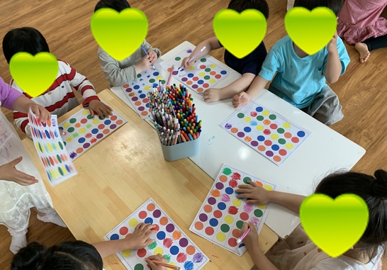 교수자가 보여주는 1가베를 활용한 간단한 패턴을 통해 아이들은 패턴이 무엇인지에 대해 대략적으로 인지할 수 있게 됩니다. 이를 강화하기 위해 활동지를 준비해서 패턴 놀이를 진행할 수 있습니다. 가베로 진행했던 것과 같은 패턴으로 제공해도 좋고, 새로운 패턴을 준비해서 아이들이 문제 해결력을 높일 수도 있습니다. 색 이름을 말하면서 패턴을 익히고, 규칙성을 깨달으면서 아이들은 수학적인 사고력과 문제 해결력을 기를 수 있습니다. 각 단계별로 난이도를 높여가면서 성취감을 느낄 수도 있겠지요. 실제로 한 패턴을 맞출 때마다 아이들은 "이것 좀 보세요!" "내가 했어요!" 등의 반응을 보이면서 뿌듯해하는 모습을 관찰할 수 있었습니다. 색을 통한 패턴이 마무리된다면 주변 사물을 활용한 패턴 놀이로 확장해도 좋습니다. 아이들에게 친숙한 놀이감이나 사물을 패턴 활동지로 녹여 스티커 붙이기나 이름 써보기 등의 높은 수준으로 활동 진행이 가능하겠지요. 이 부분 또한 교수자가 어떻게 응용하느냐에 따라 다양한 방법으로 진행될 수 있습니다. 패턴 놀이 시에 주의해야 할 점은, 아이들이 규칙을 잘 파악하지 못 할 때의 교수자의 태도입니다. 아이들은 당연히 어려워할 수 있고 모를 수 있습니다. 이에 따라 그러한 모습을 답답해한다던가 이해하지 못하겠다는 반응을 보인다면 아이들의 자존감은 낮아지겠죠. 교수자가 인내함으로서 아이들을 격려해주고 어려워할 경우에는 답을 맞출 수 있도록 적당한 비계를 설정하면서 놀이가 진행될 수 있도록 하는 것이 가장 중요합니다.