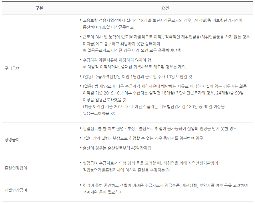 지금까지는 실직 전 18개월 간 근로인 기준 180일 이상 고용보험에 가입되어 있으면 신청이 가능했습니다. 하지만 이번 조치로 인해 필수 고용보험 가입 기간을 10개월까지 늘리는 방안이 논의되고 있으며 상반기 중에 최종 개편안에서 확정될 예정입니다.