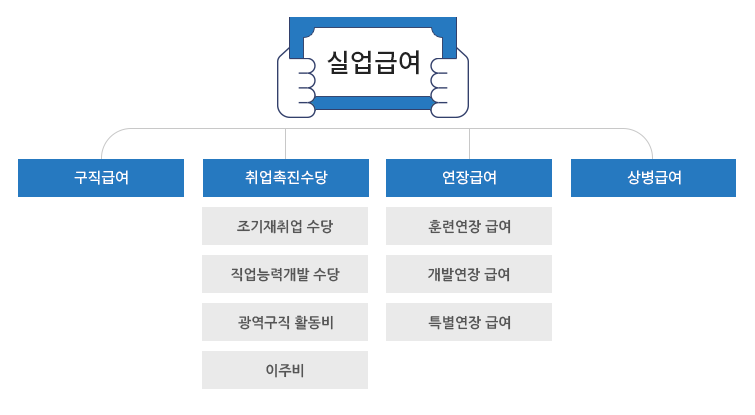 고용보험 가입 근로자가 실직하여 재취업 활동을 하는 기간에 소정의 급여를 지급함으로써 실업으로 인한 생계불안을 극복하고 생활의 안정을 도와주며 재취업의 기회를 지원해주는 제도로서, 실업급여는 크게 구직급여와 취업촉진수당으로 나누어져 있습니다. 실업급여는 실업에 대한 위로금이나 고용보험료 납부의 대가로 지급되는 것이 아닙니다. 실업이라는 보험사고가 발생했을 때 취업하지 못한 기간에 대하여 적극적인 재취업활동을 한 사실을 확인(실업인정)하고 지급합니다. 실업급여 중 구직급여는 퇴직 다음날로부터 12개월이 경과하면 소정급여일수가 남아있다고 하더라도 더 이상 지급받을 수 없습니다. (실업급여 신청 없이 재취업하면 지급받을 수 없으므로 퇴직 즉시 신청하시기 바랍니다.)