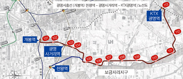 국토부 직원의 답변 내용에서도 알 수 있듯이 개봉역 또한 오류동역의 대체 신설역으로 거론되고 있습니다. '광명시흥신도시' 추진에 따른 '광명시흥선' 철도 신설이 그 이유입니다. 광명시흥선은 광명역에서 개봉역까지 이어지는 노선인데요, 2013년부터 추진한 사업으로 조금씩 진행이 이루어지고 있다고 합니다.