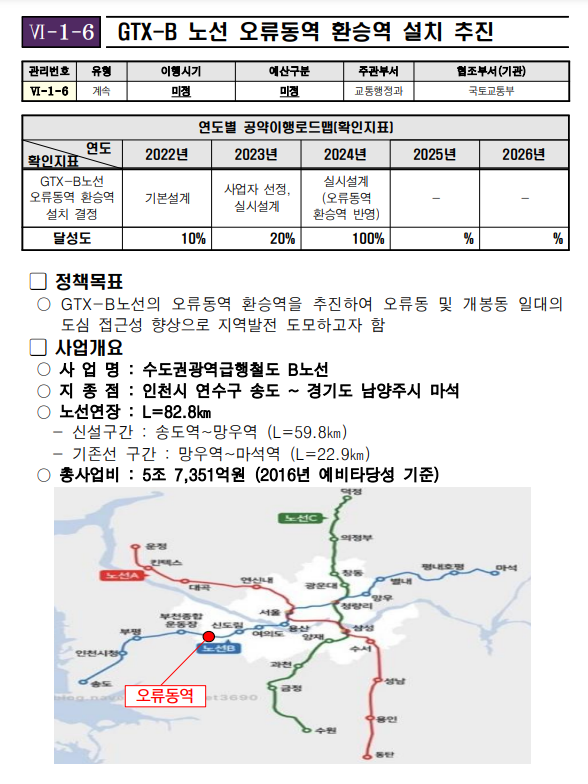 오류동역이 거론되는 이유는 gtx-b 노선 정차 예정인 부천종합운동장역과 신도림역 사이 거리가 꽤 멀기 때문인데요. 구로구청장도 오류동역을 환승역으로 설치 추진한다고 공약까지 내걸었습니다.